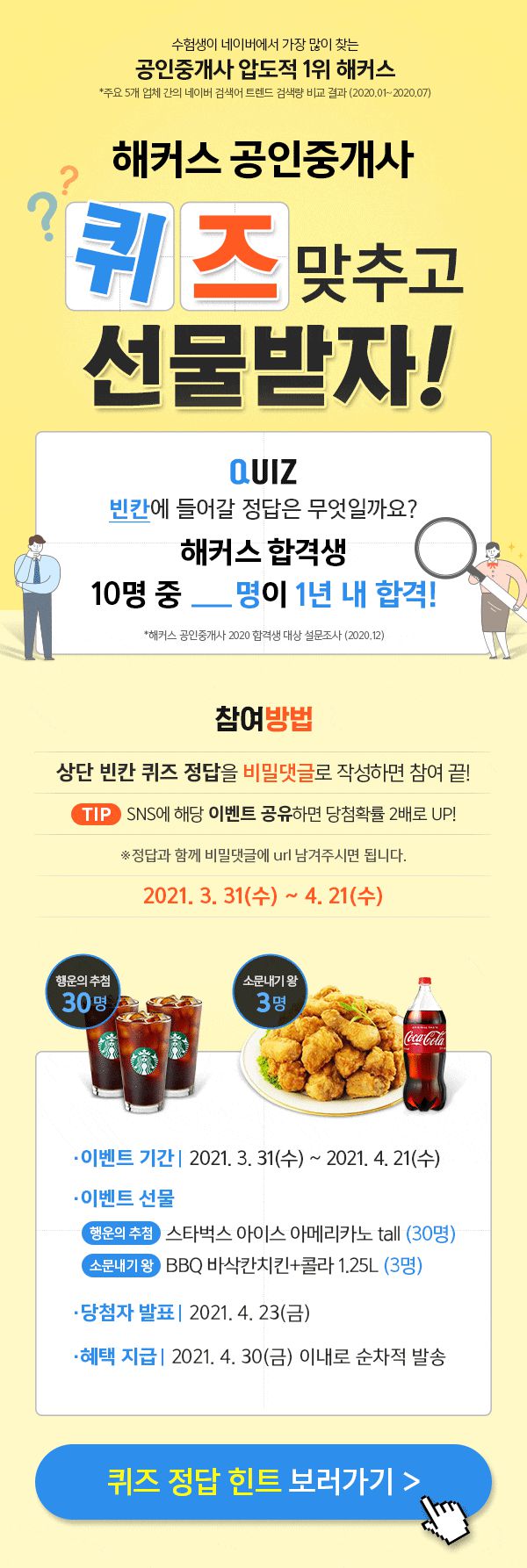 해커스 공인중개사 퀴즈 맞히고 공유만 하면 커피와 치킨이 와르르!!