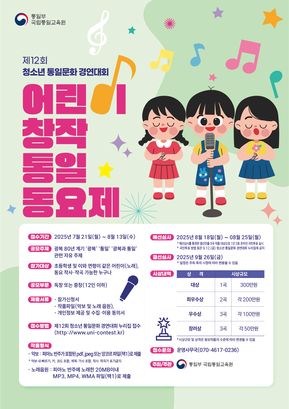 [통일부 국립통일교육원] 2025년 어린이 창작 통일 동요제