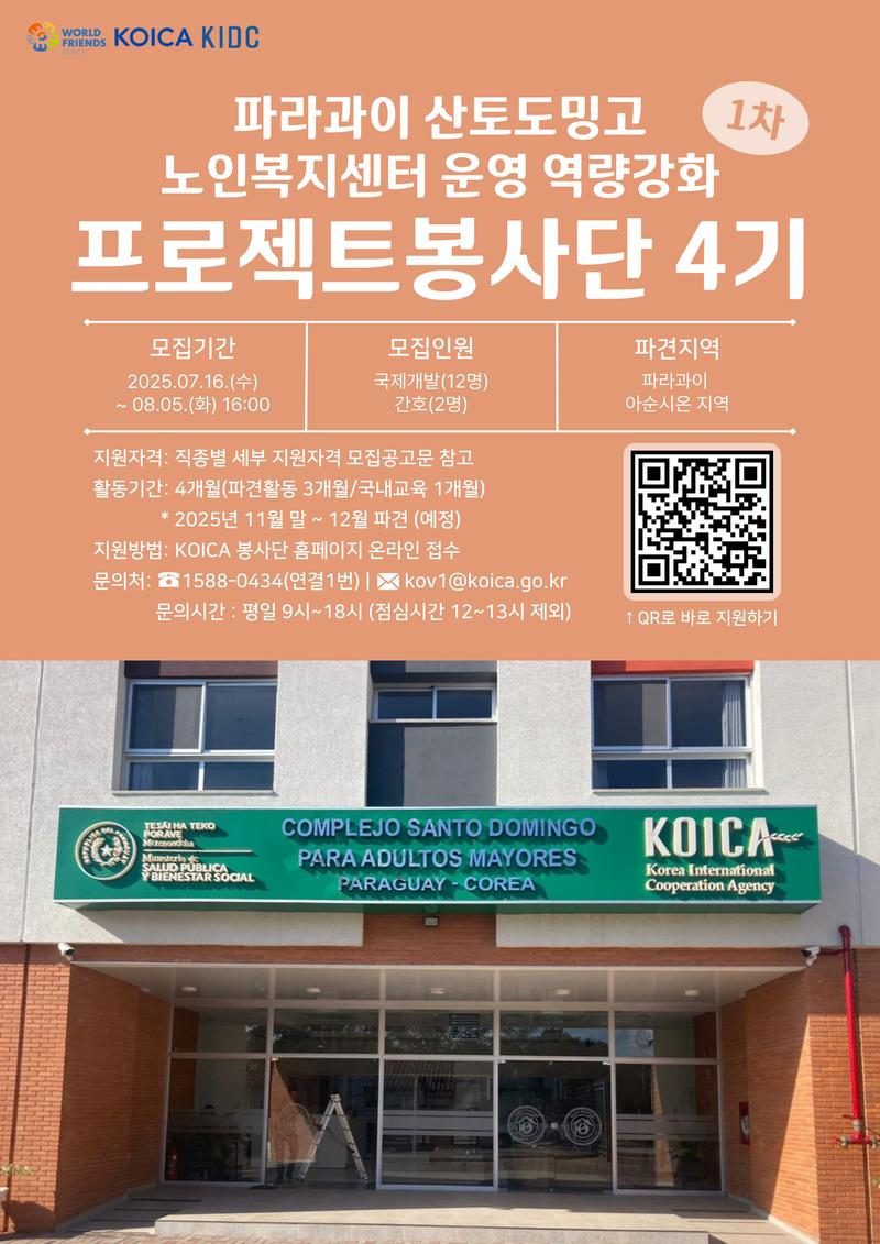 ㅇ 사 업 명 : 2025년 개편 KOICA 프로젝트 봉사단(4기) 파라과이 노인복지센터 운영역량강화 프로젝트 봉사단 사업