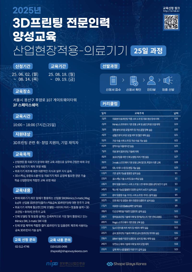 🦾 2025년 3D프린팅 전문인력 양성교육 (의료기기 특화과정)