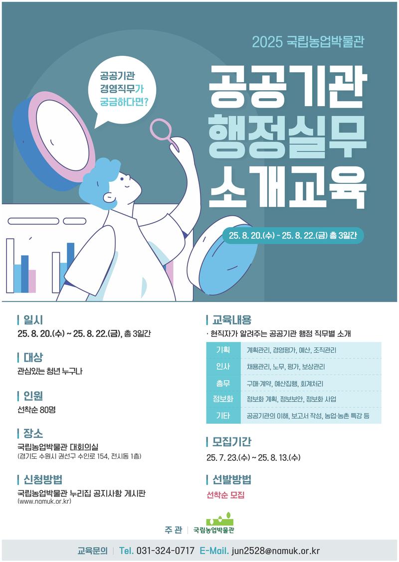 2025년 공공기관 행정실무 소개교육을 다음과 같이 안내드리오니, 많은 관심과 참여 부탁드립니다.