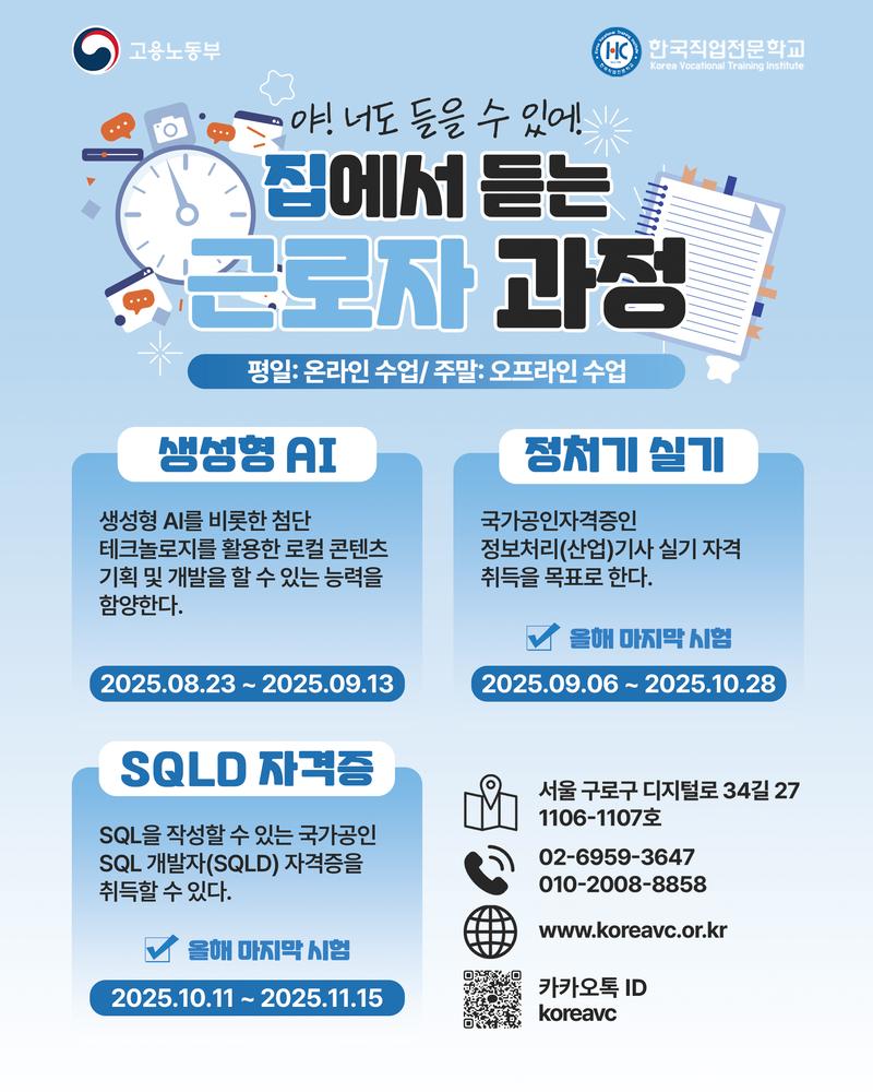 바쁜 여러분을 위해 50%의 주말 대면 교육은 서울 한국직업전문학교에서 진행합니다.