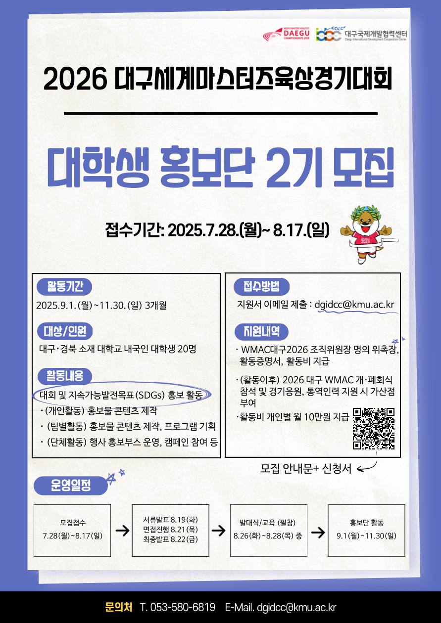 2026 대구세계마스터즈 육상경기대회 ’대학생 홍보단‘ 모집 안내🏃🏼♂️➡️🏃♀️➡️