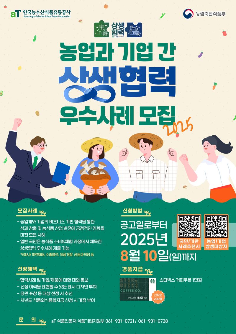 농업과 기업 간의 상생협력을 통해 우리 농식품 산업 발전에 기여할 뜻깊은 사례를 찾습니다!🥰