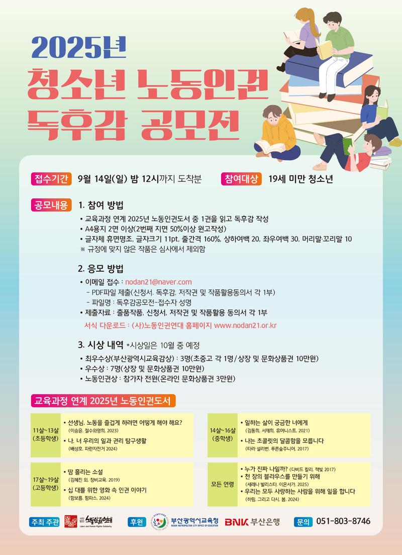 ○ 공모명 : 2025 청소년 노동인권 독후감 공모전