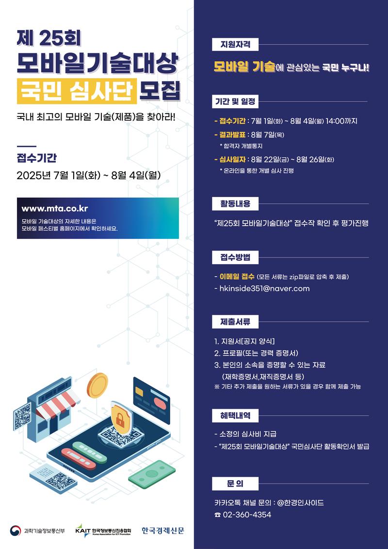 - “제25회 모바일기술대상” 접수작 확인 후 평가진행