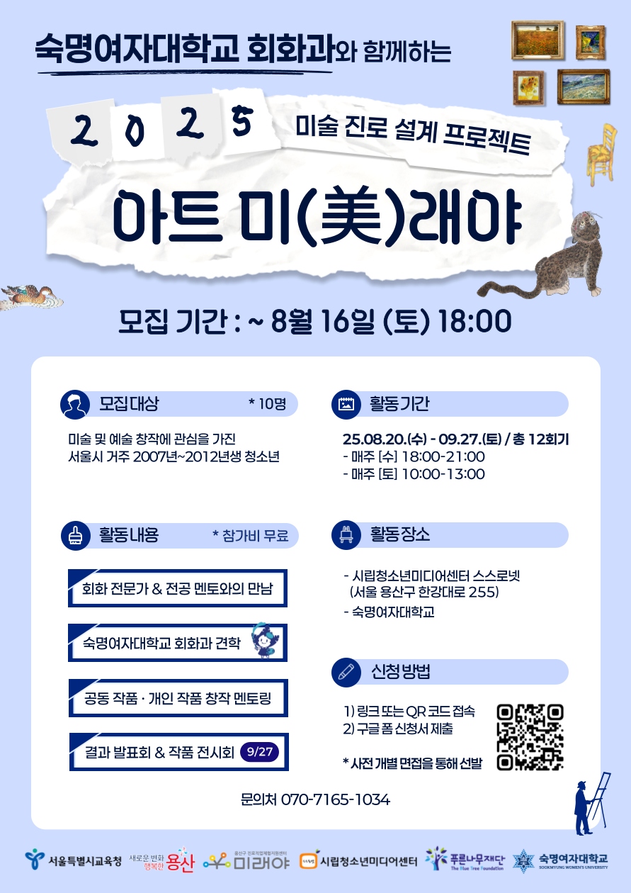 청소년 미술 진로 설계 프로젝트, 2025 <아트 미(美)래야> 11기의 참가 청소년을 모집합니다!