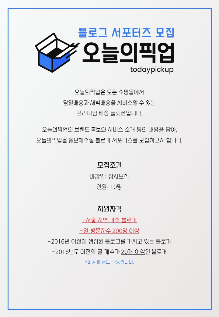 오늘의픽업을 홍보해주실 블로거 서포터즈를 모집하고자 합니다.