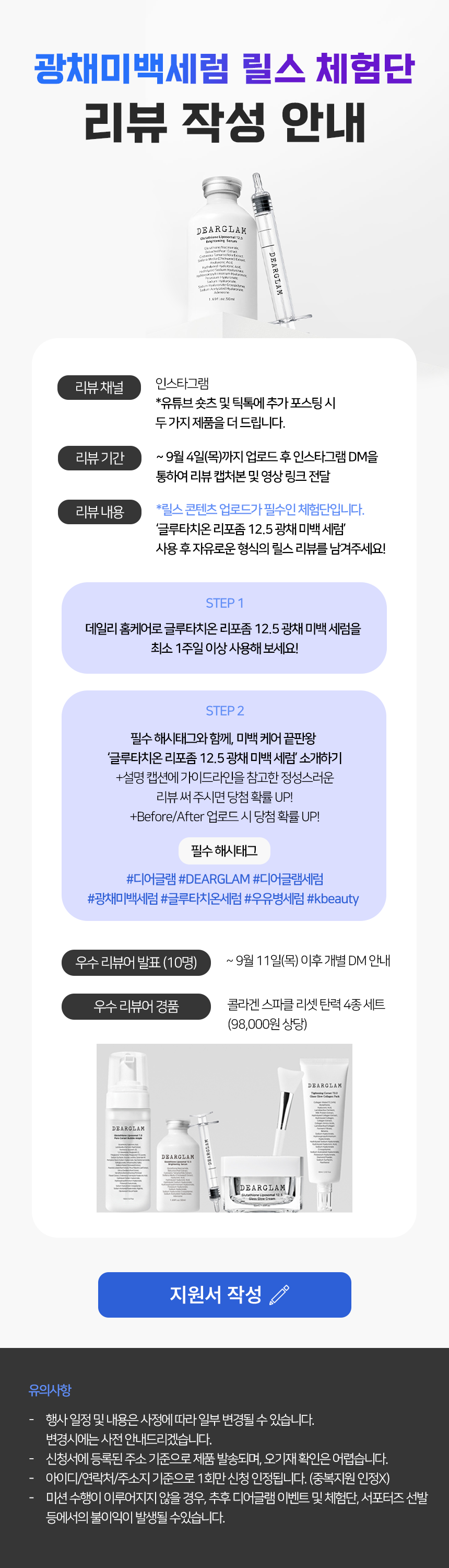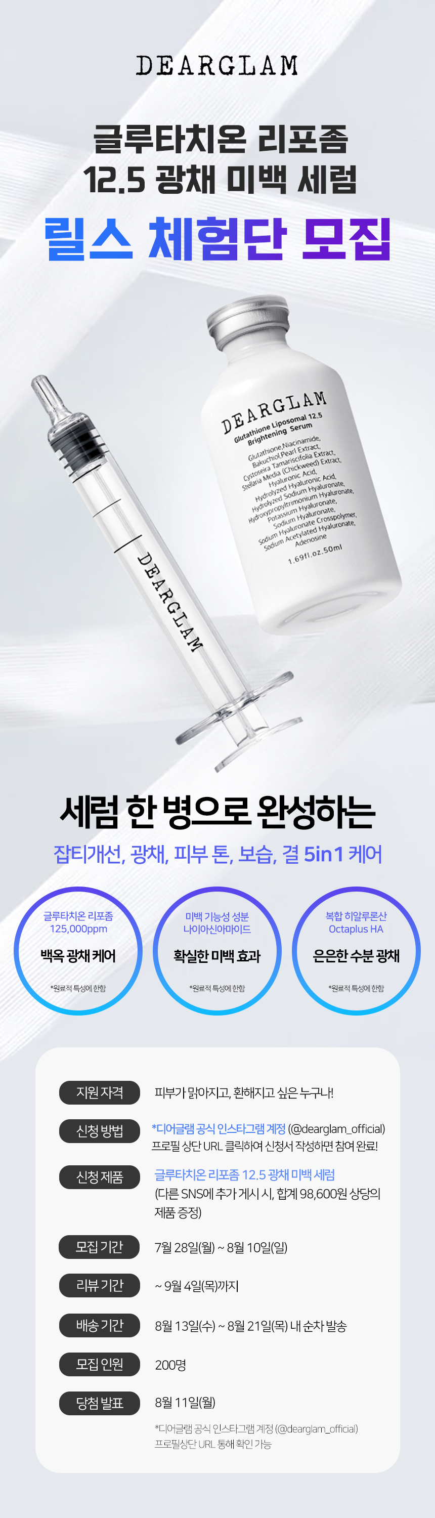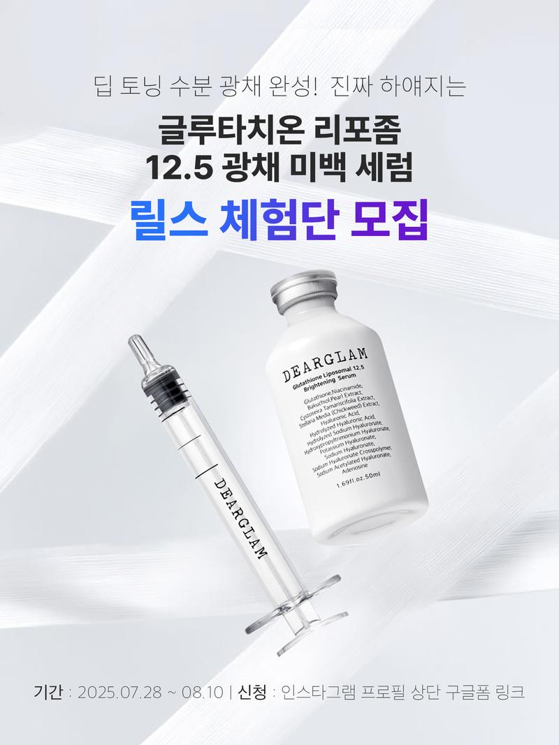 대외활동명 : 디어글램 '글루타치온 리포좀 12.5 광채 미백 세럼' 릴스(숏폼) 체험단 모집