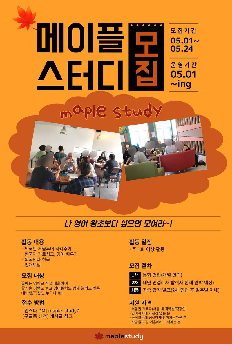 🍁영어 회화(교류) 동아리 메이플 스터디에서 신규 부원을 모집합니다! 🍁