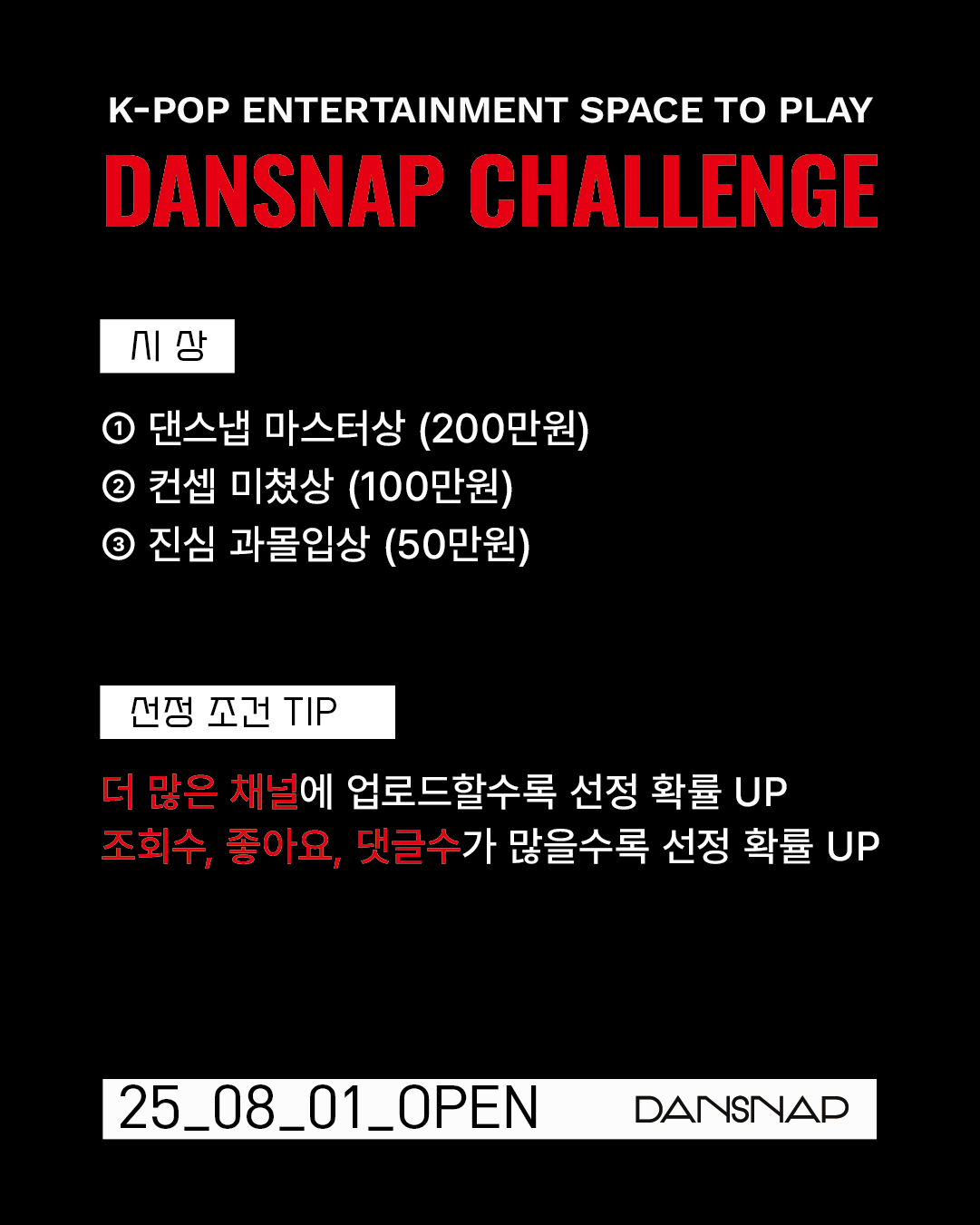 ※ 콘텐츠 제작 시 '댄스냅' 팝업부스 이용요금이 발생합니다.