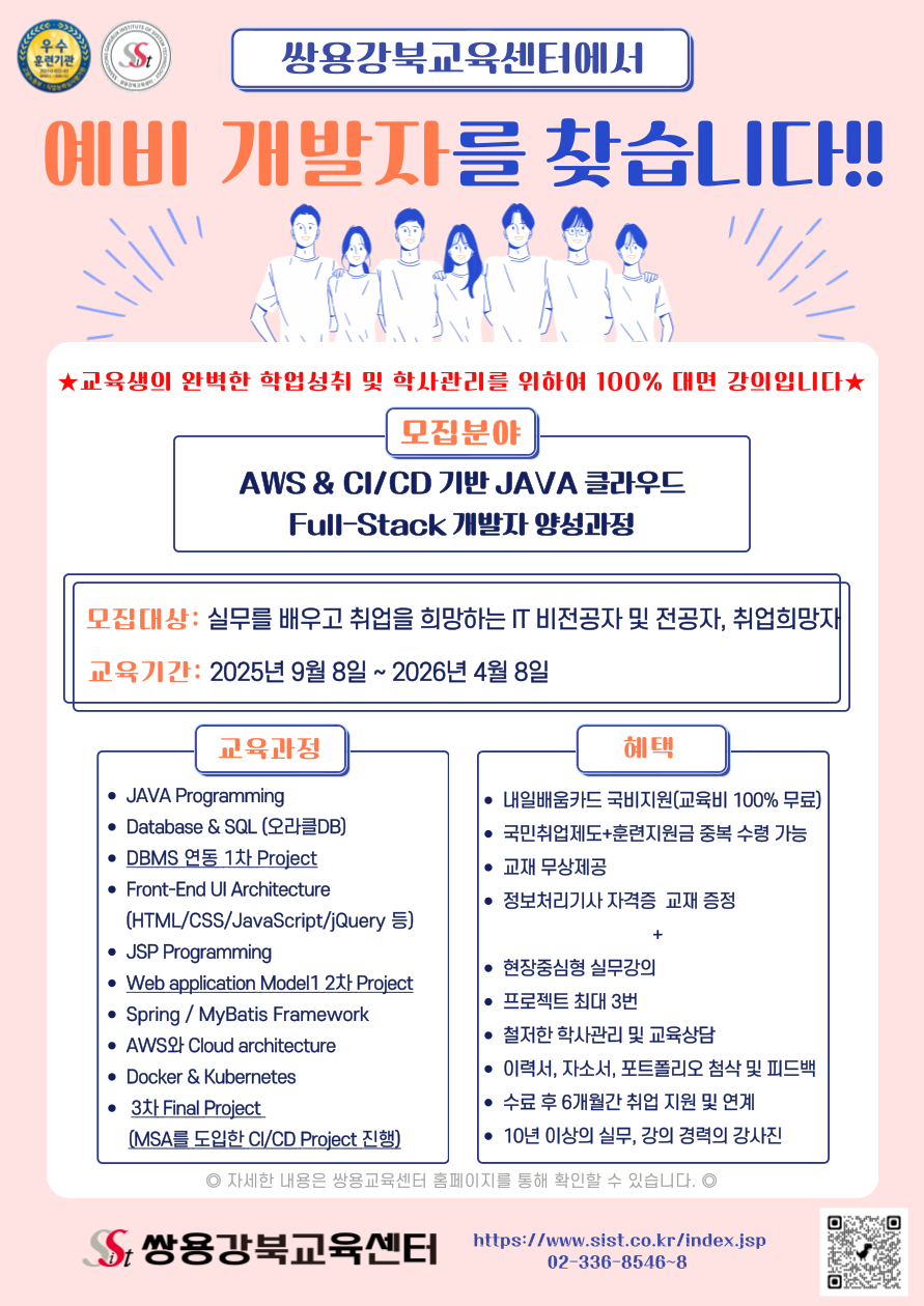 ▶ 9월 8일 개강과정 https://www.sist.co.kr/employment/gangbuk/read.jsp?no=753