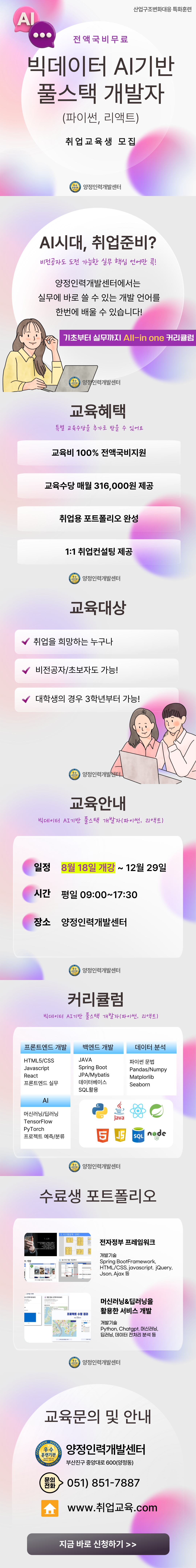 [취업인기직종] 빅데이터 AI기반 풀스택 개발자(파이썬, 리액트) 교육생 모집