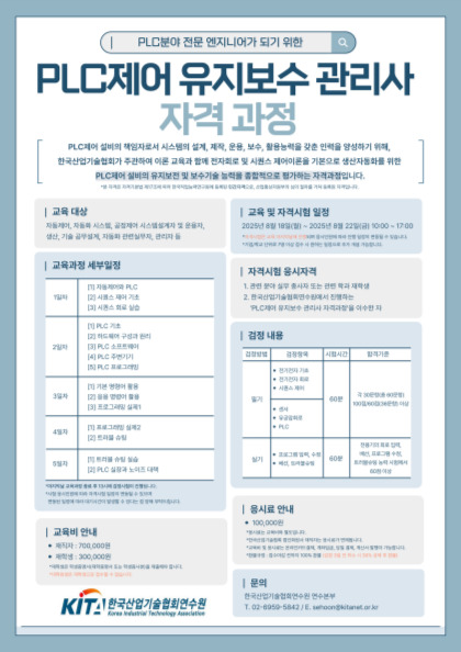 생산자동화를 위한 PLC제어 설비의 유지보전 및 보수기술 능력을 종합적으로 평가하는 자격 과정입니다.