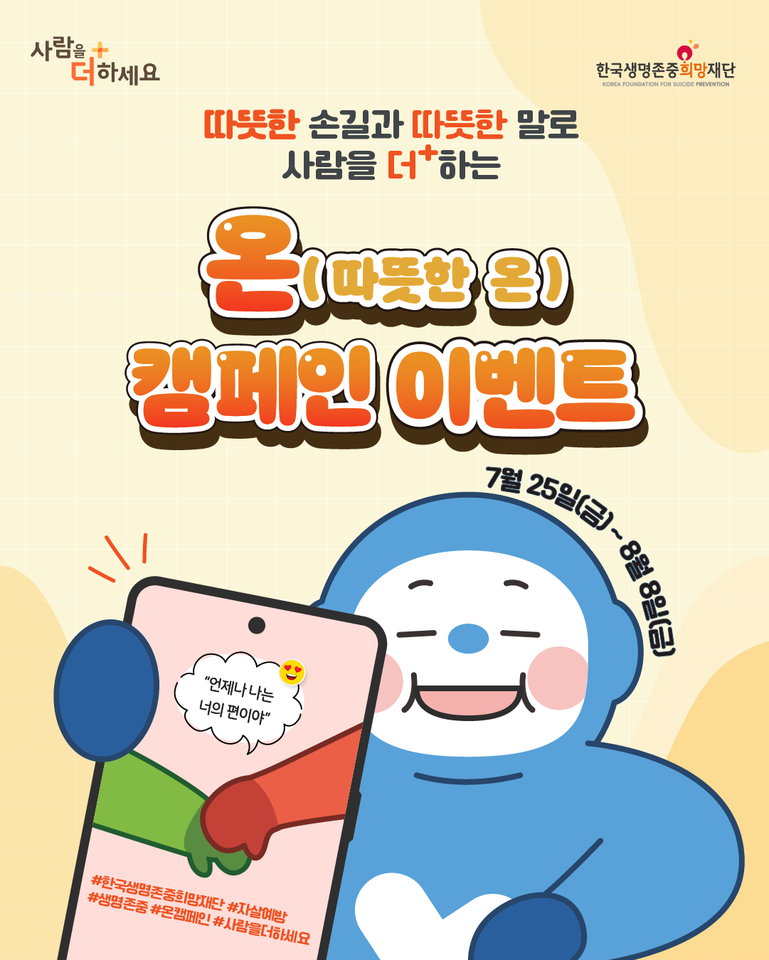#한국생명존중희망재단 #자살예방 #생명존중 #온캠페인 #사람을더하세요