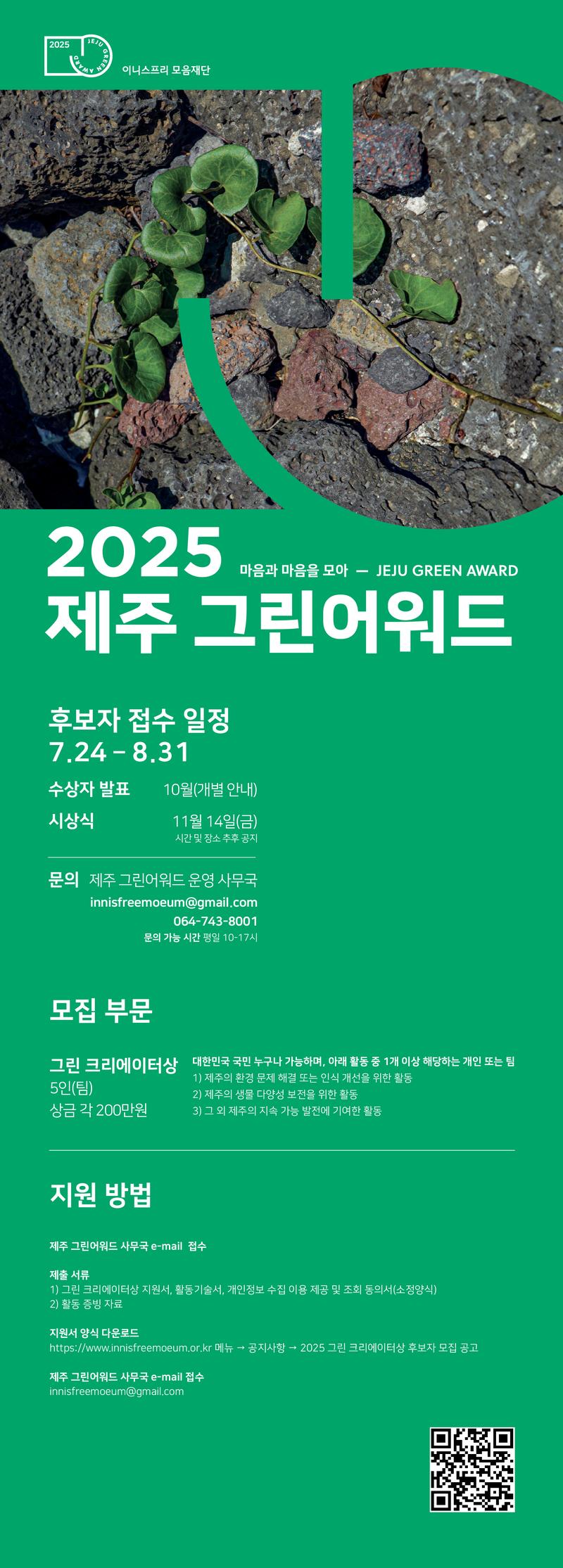 2️⃣서류 작성 후 제주 그린어워드 사무국 이메일(innisfreemoeum@gmail.com) 접수