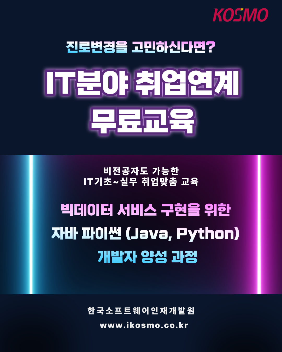 - 홈페이지 : https://www.ikosmo.co.kr (한국소프트웨어인재개발원)