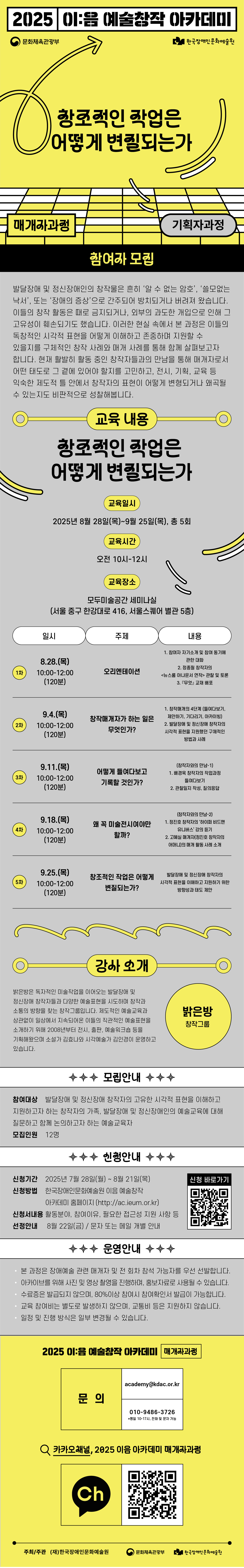 신청 링크: 이음 예술창작 아카데미 홈페이지