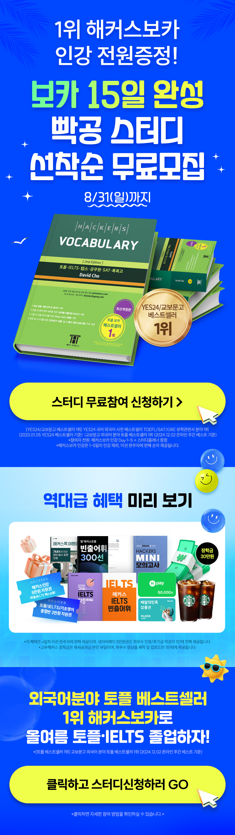 *스터디 미션 성공 시 각 주차별 해커스 보카(초록이) 인강이 추가 제공됩니다.