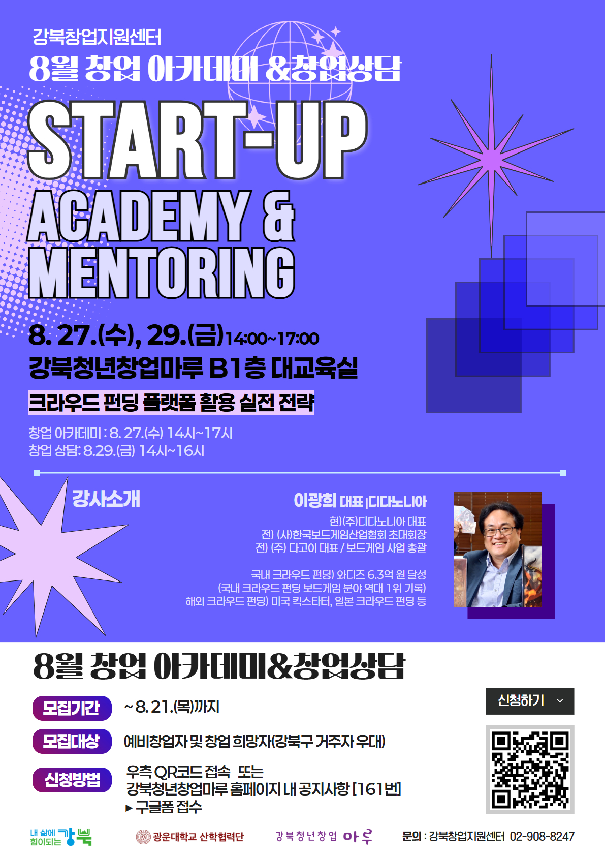 8월 창업 아카데미 & 창업 상담 프로그램을 진행합니다.
