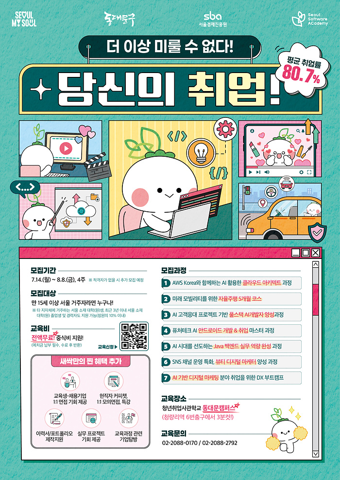 ※ 본 교육은 서울특별시와 서울경제진흥원(SBA)이 주관하는 청년 인재 양성을 위한 무료 교육 프로그램입니다.