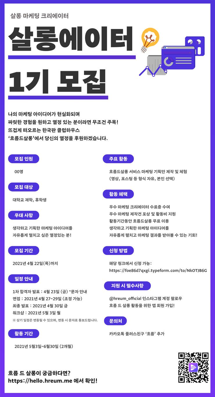 - 흐름드살롱 서비스 마케팅 기획안 제작 및 체험 (영상, 포스팅 등 형식 자유, 본인 선택)