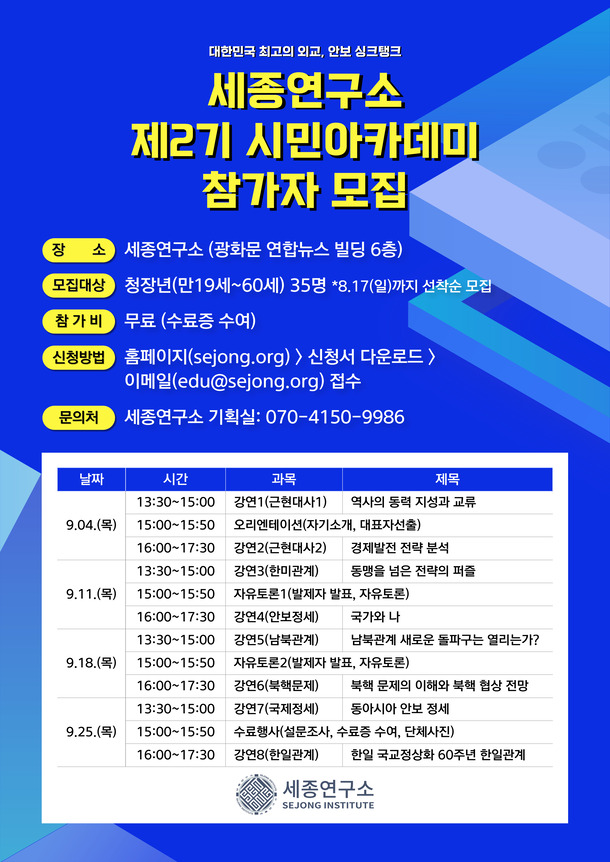 광화문 세종연구소 "2025 세종시민아카데미 2기" 모집