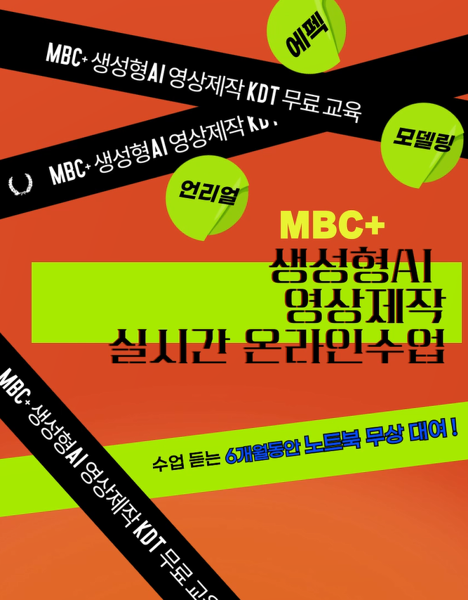 - [MBCPLUS] 실시간 비대면 생성형AI 영상제작 영상편집 KDT 교육 참여자를 모집합니다.