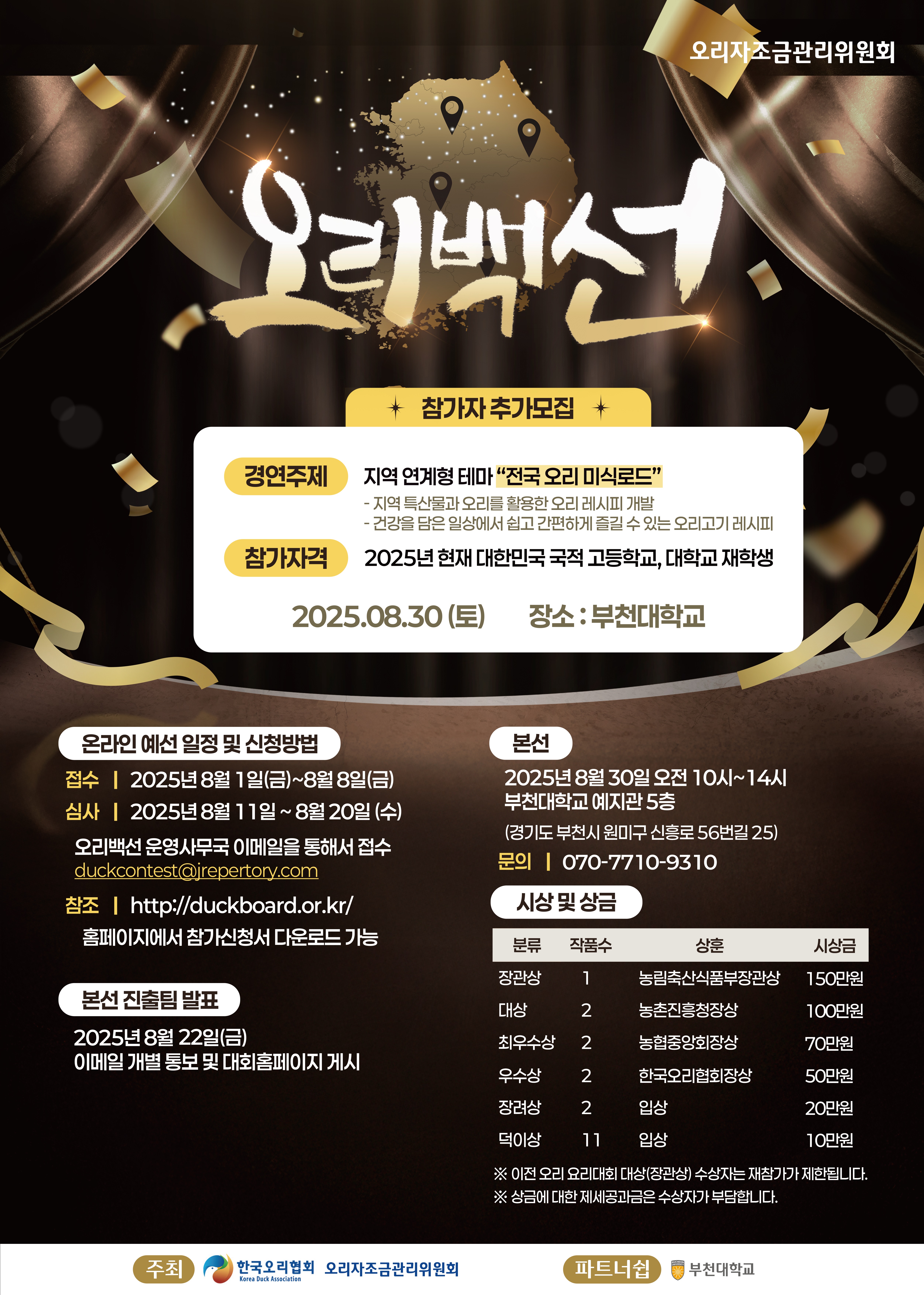 * 이전 오리 요리대회 대상(장관상) 수상자는 재참가가 제한됩니다.