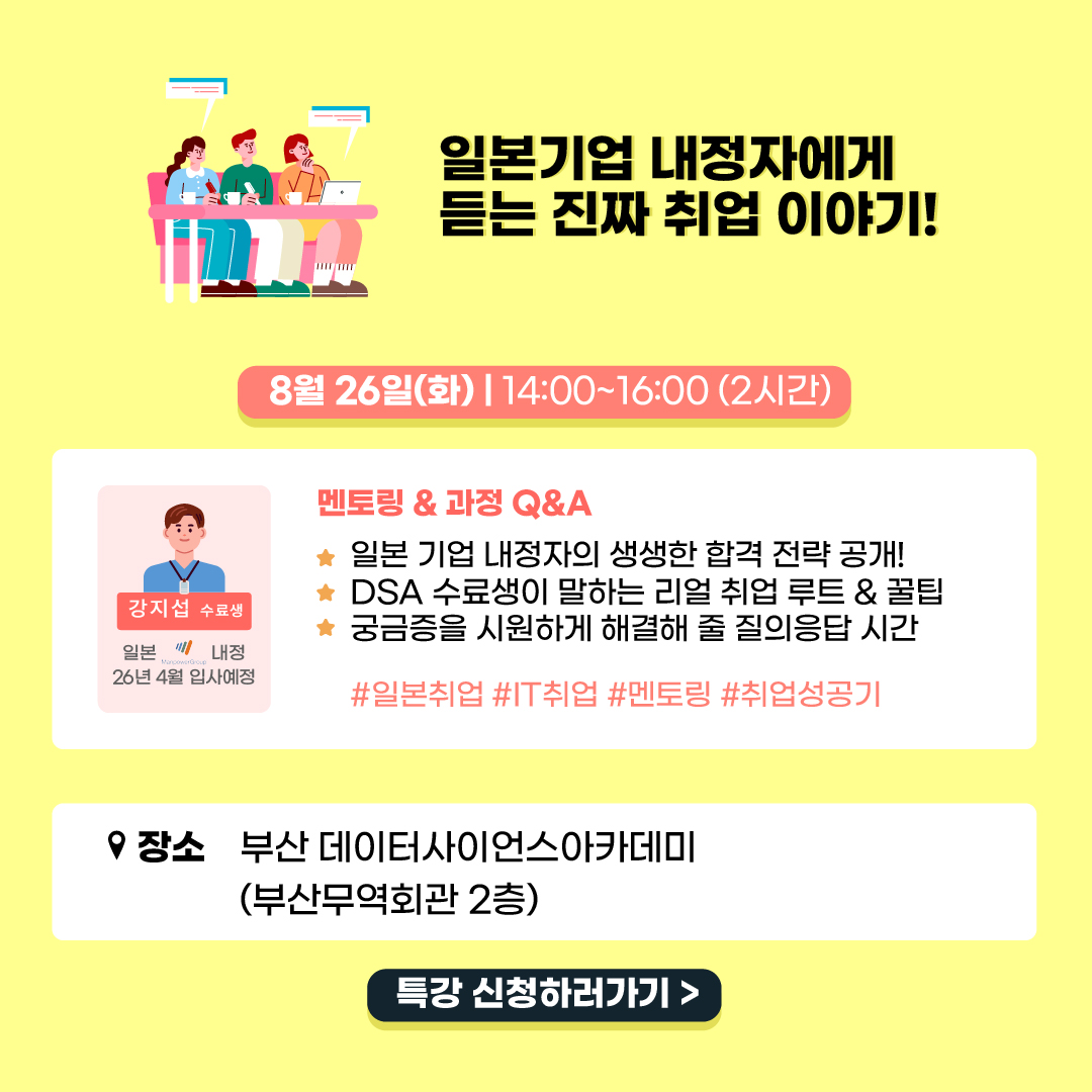 [📣스펙이 아닌 실력으로! 일본 ICT취업, DSA와 함께 현실로 만든다!📣]