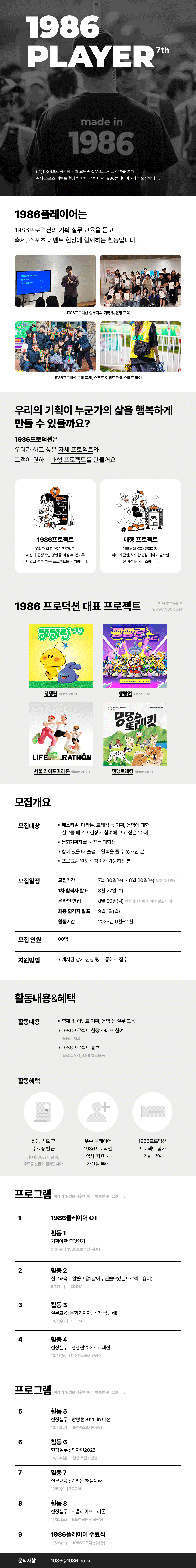 � 1986플레이어 7기 모집 (7/30~8/20)