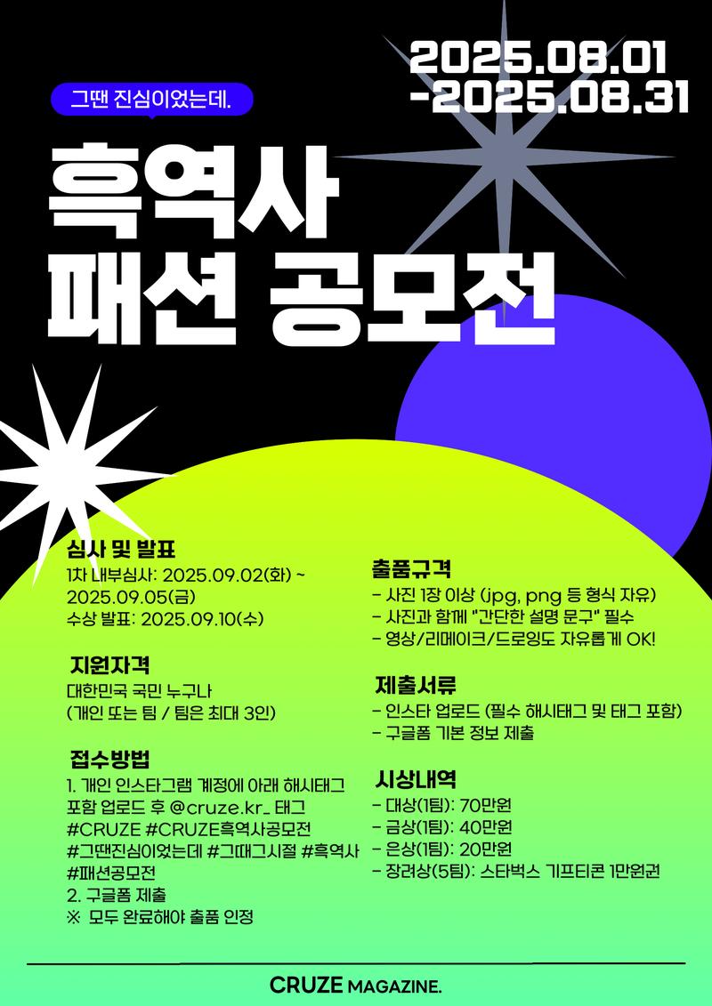 CRUZE에서 패션 흑역사 아카이빙 콘텐츠 제작을 위한 공모전 참여자를 모집합니다.