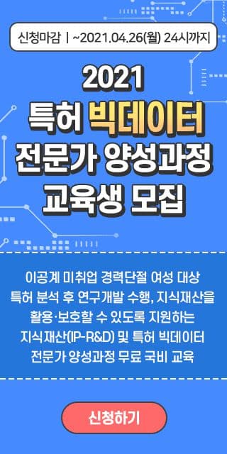 | 본 직업훈련과정은 유관 기관 취업률 3년 평균 90%이상!(수료 후 6개월 이내 취업률)을 달성, 특허 빅데이터분야 공공기관, 민간기업의 특허부서, 특허법인, 특허사무소등의 IP-R&D전략전문 분야로 진출함. |