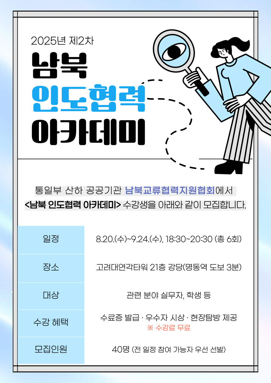 『2025년 제2차 남북 인도협력 아카데미』 수강생 모집