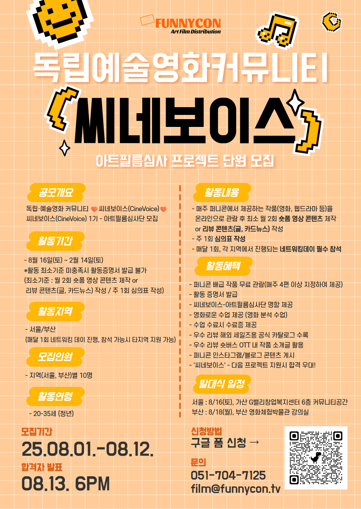 최종 합격자는 '씨네보이스' 1기 - 아트필름심사단 단원으로 활동하게 됩니다.🧐