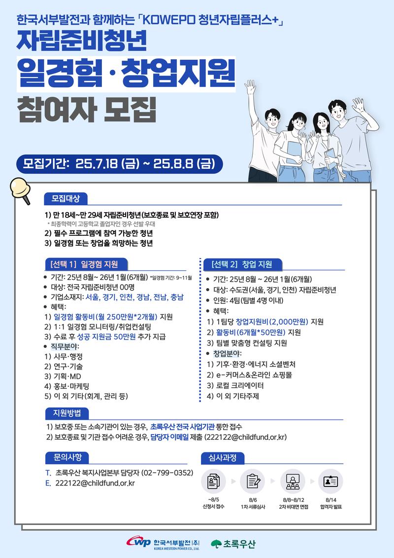 한국서부발전과 함께하는 [KOWEPO 청년자립플러스+] 사업에 참여할 청년을 모집합니다!