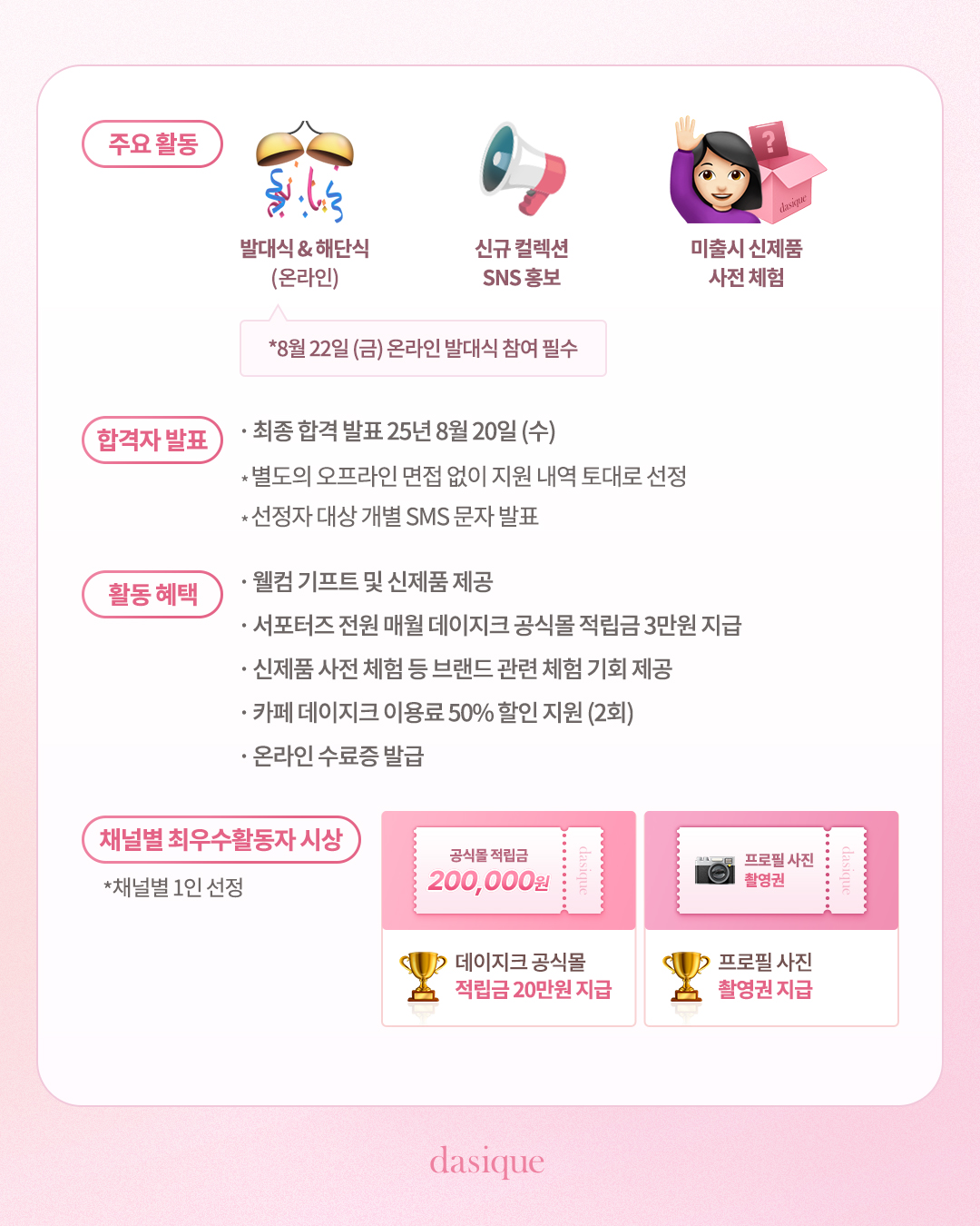 - 서포터즈 전원 매월 데이지크 공식몰 적립금 3만원 지급
