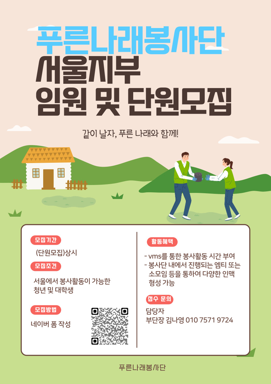 푸른나래와 소통하며 인맥도 쌓고 봉사도 하며 함께 성장하길 바랍니다