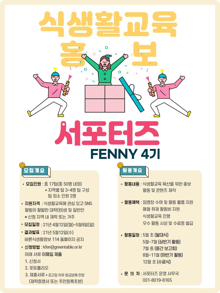 식생활교육 서포터즈 FENNY 4기를 모집합니다.