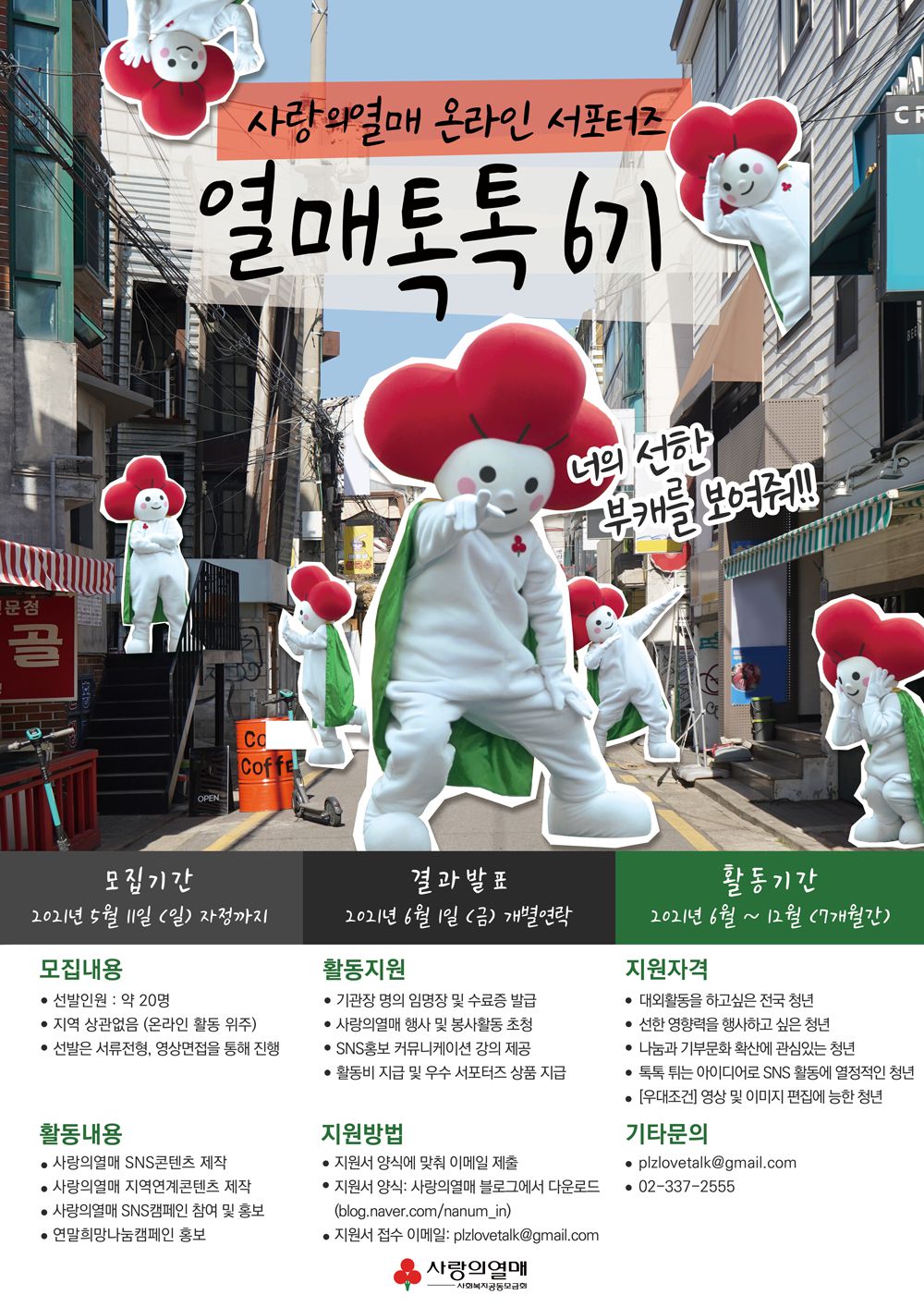 <2021년 사랑의열매 열매톡톡 온라인 서포터즈 6기 모집>