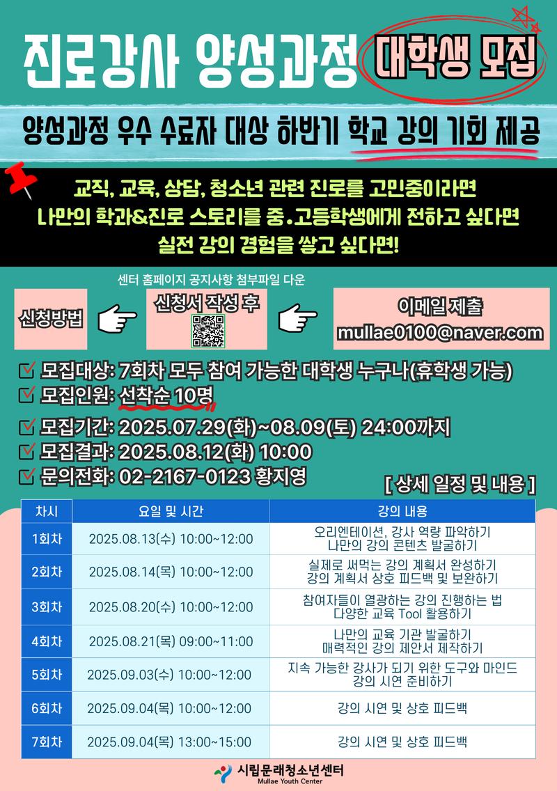📍문의: 시립문래청소년센터 청소년사업팀 02-2167-0123 황지영