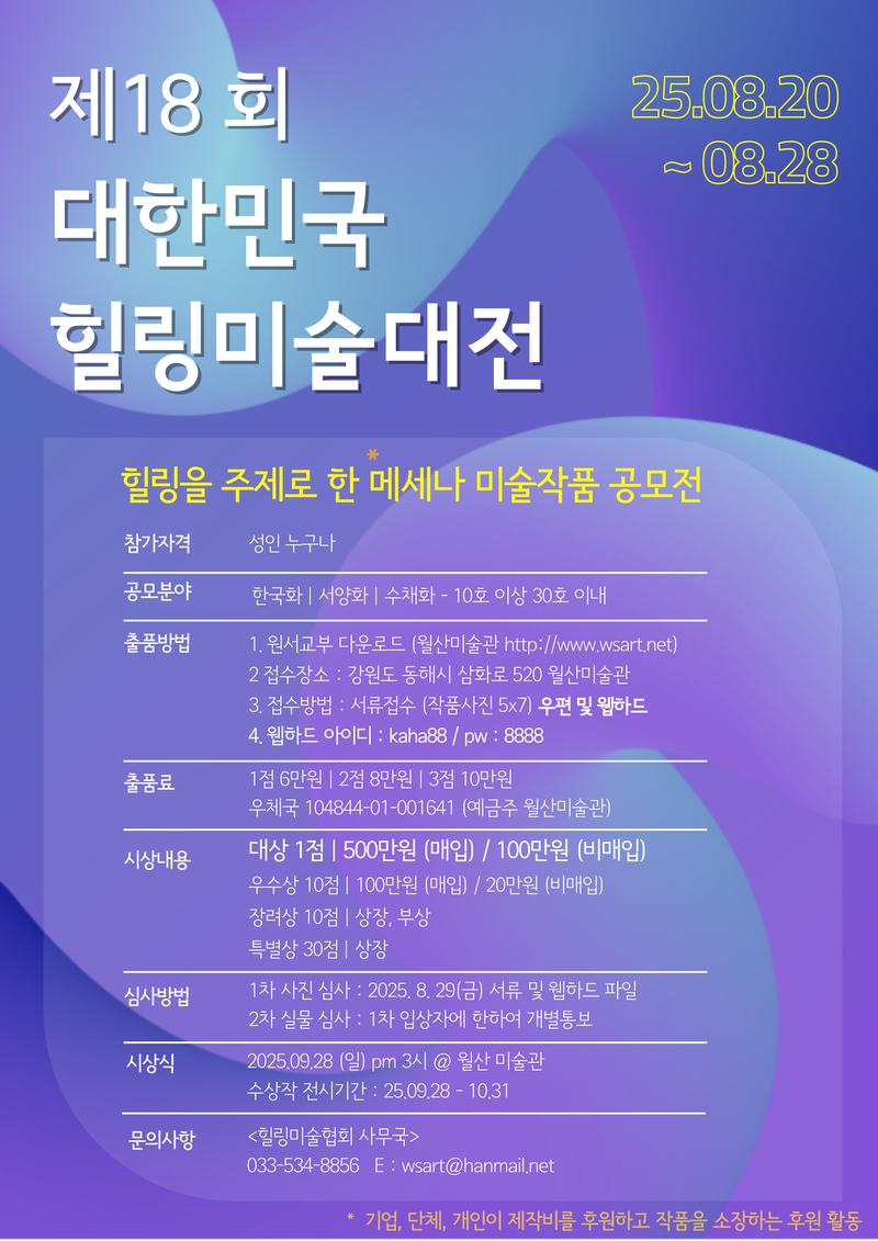 힐링미술협회 사무국 033-534-8856 ㅣ E : wsart@hanmail.net