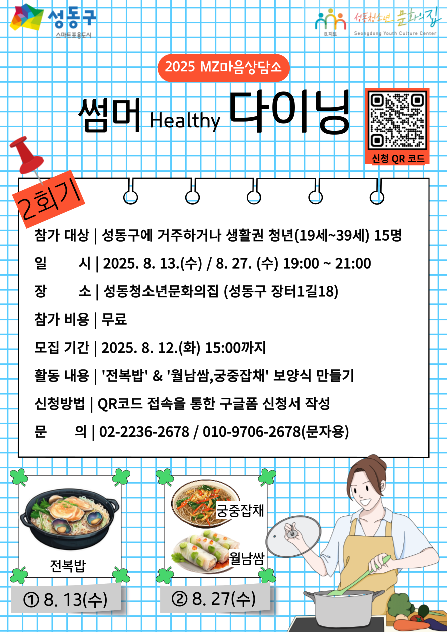 MZ마음상담소에서 청년을 위한 소셜다이닝 <썸머 다이닝> 프로그램을 2회기 진행합니다.