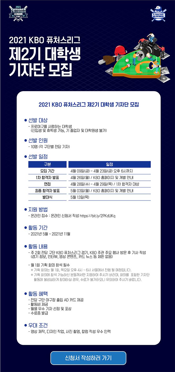 [2021 KBO 퓨처스리그] 대학생 기자단 2기 모집
