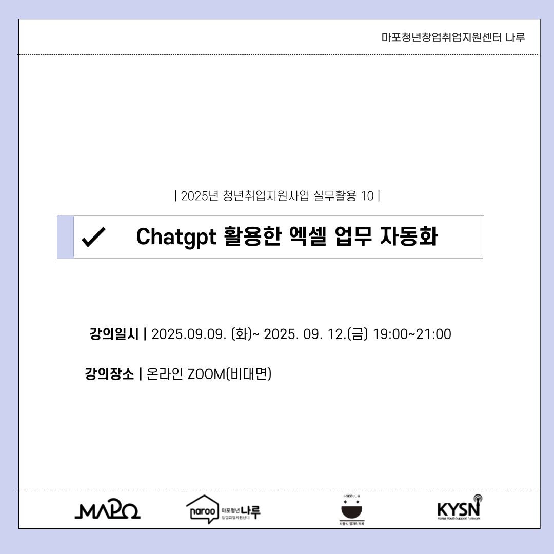 ✔ 강의일시 : 2025.09.09.(화)~2025.09.12.(금) 19:00~21:00