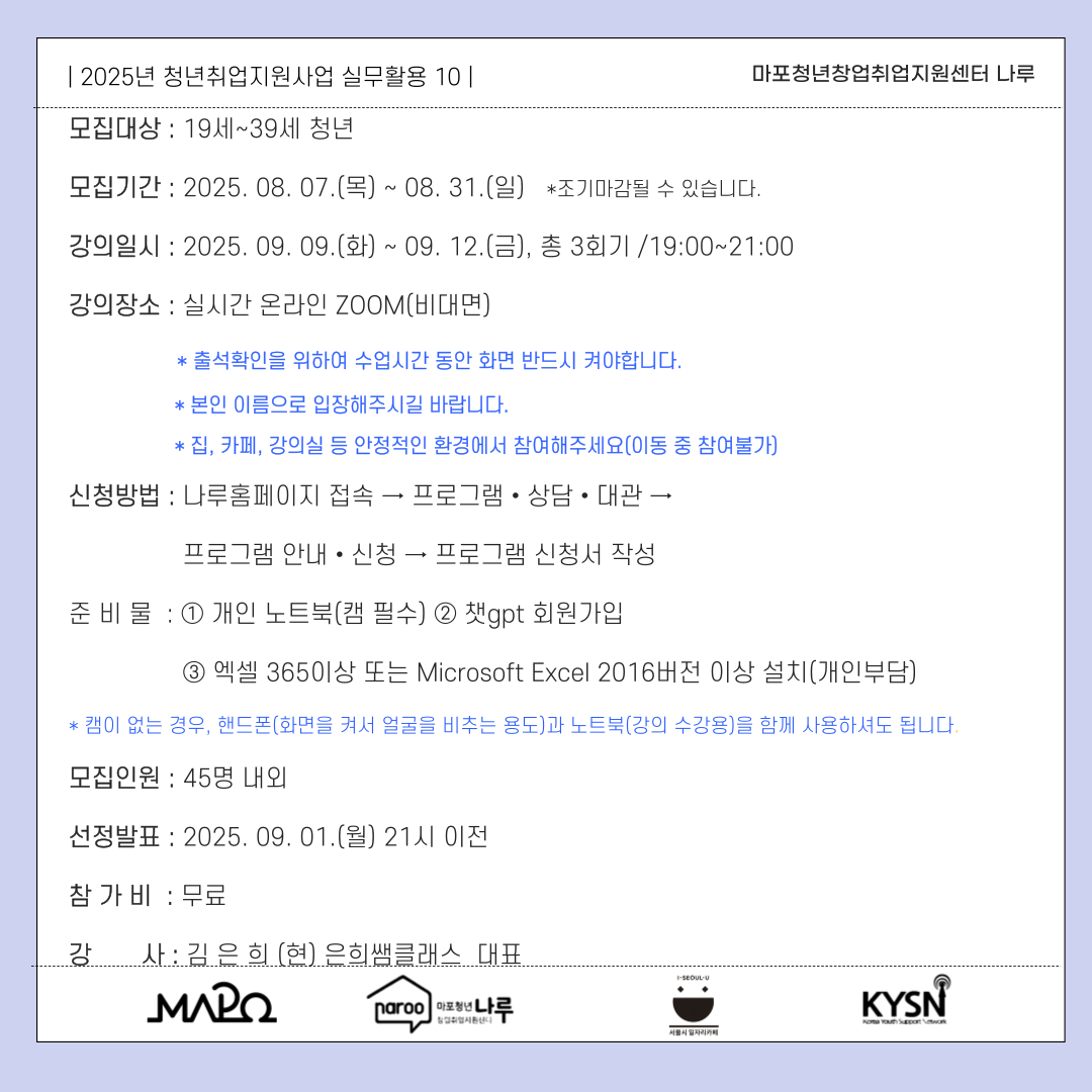 * 본 프로그램은 신청인원 정원 초과 시, 조기마감 및 강의 정원이 증원될 수 있습니다.