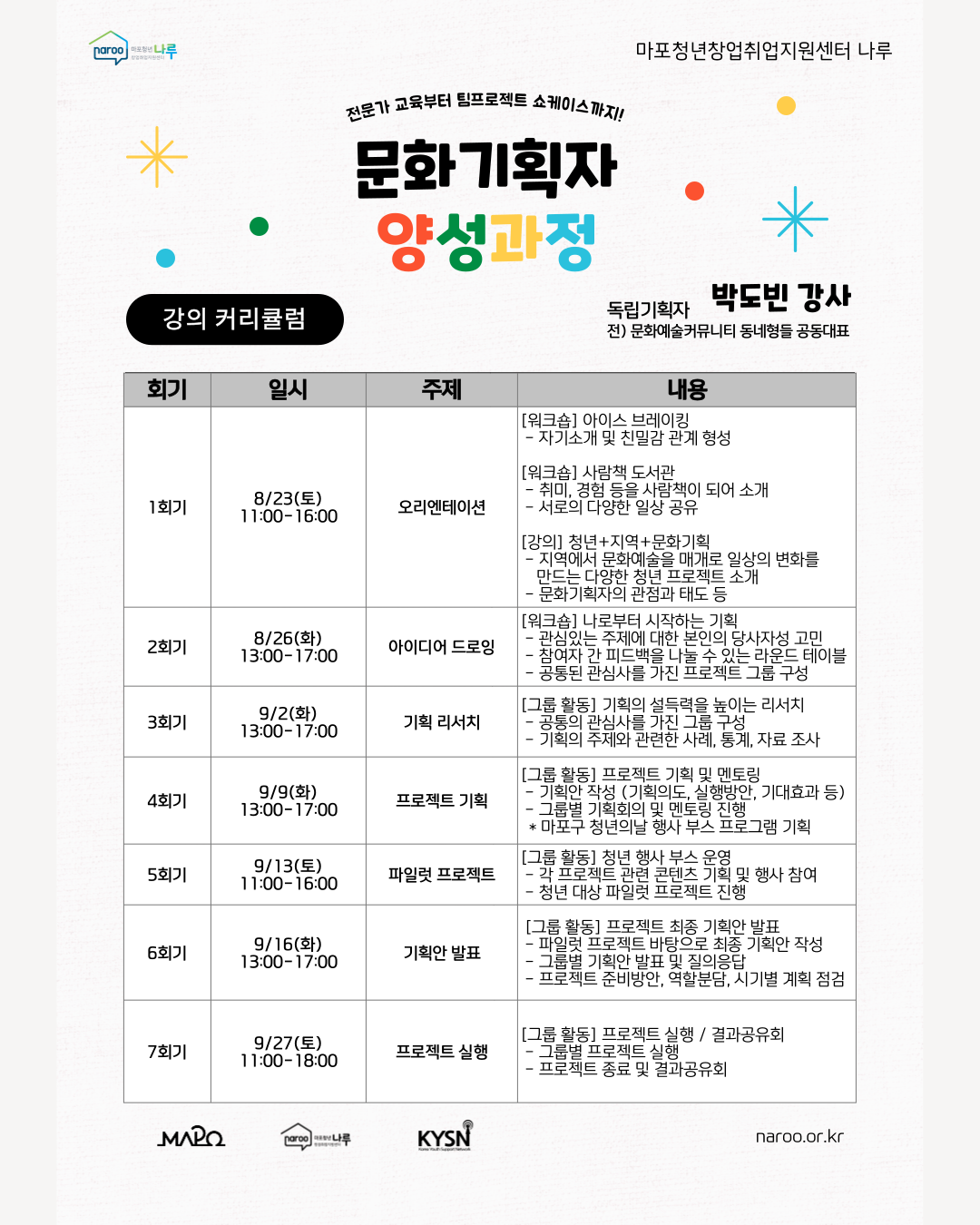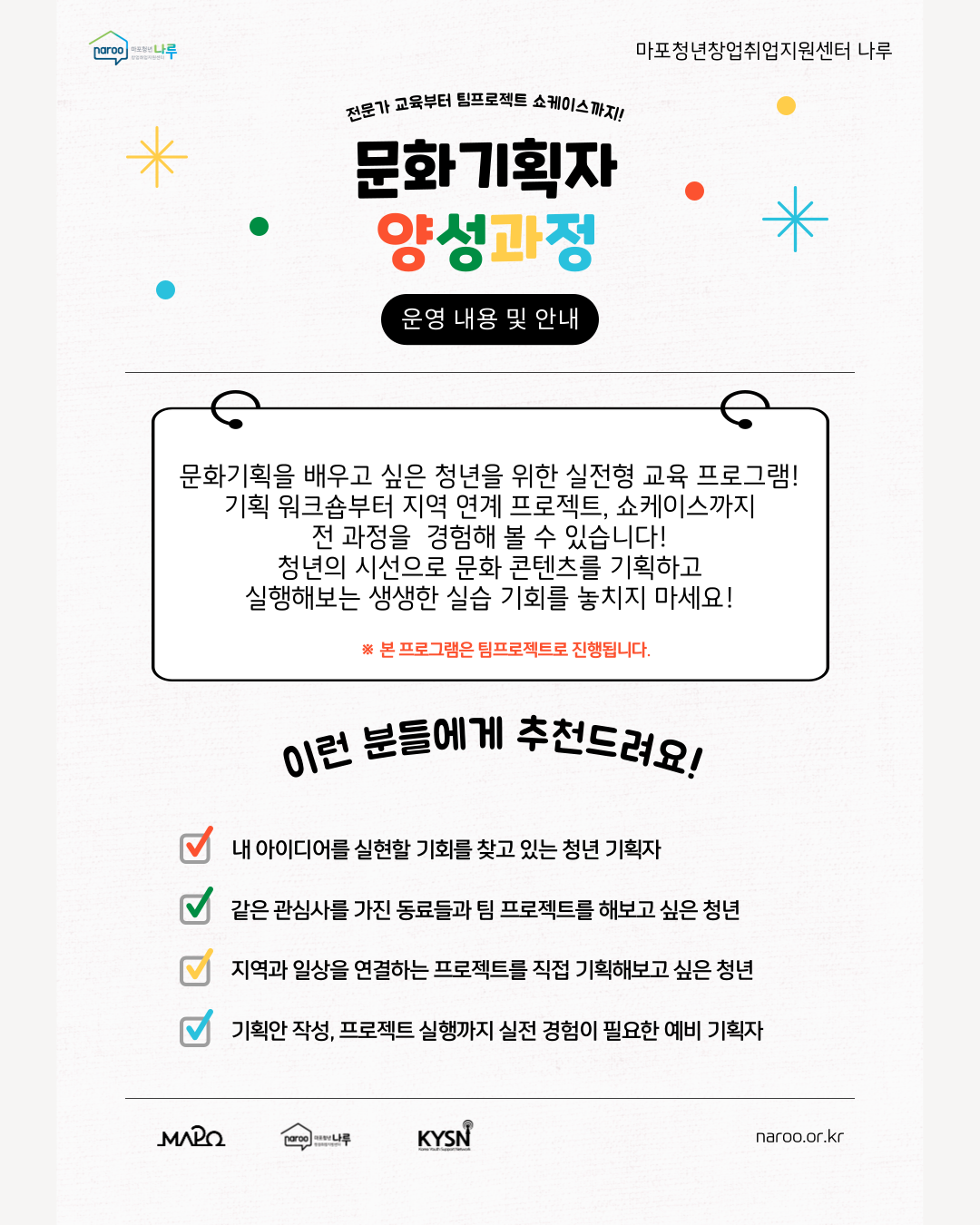 문화기획을 배우고 싶은 청년을 위한 실전형 교육 프로그램!