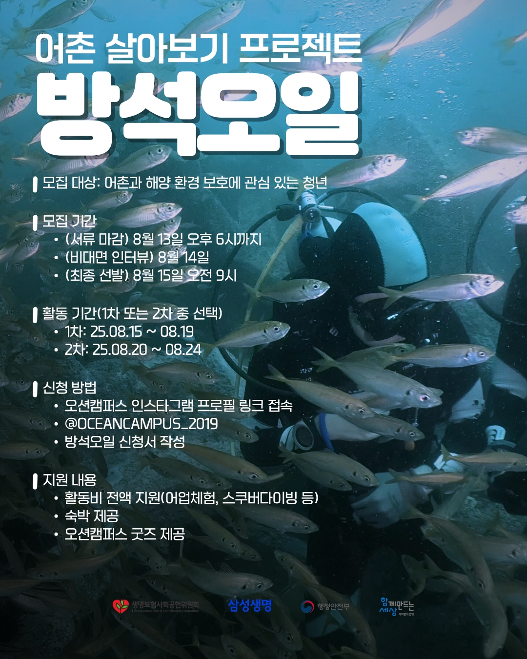 📍 모집 대상: 스쿠버 다이빙과 해양환경 보호에 관심 있는 청년(회차별 4명)
