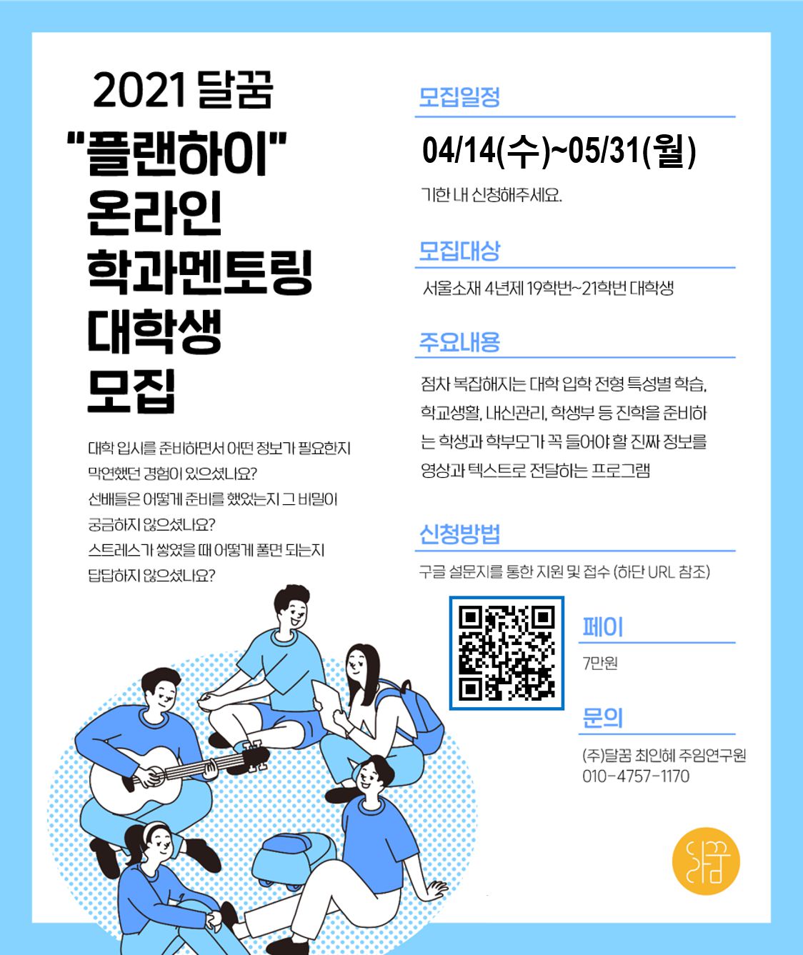 2021년 “플랜하이” 온라인 학과 멘토링 대학생 멘토를 모집합니다.