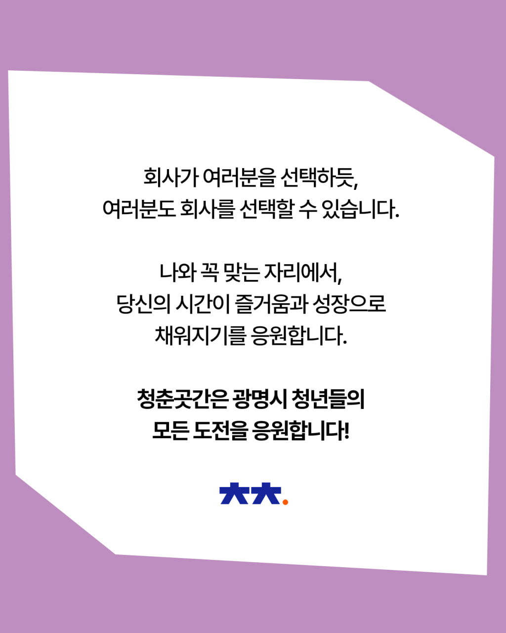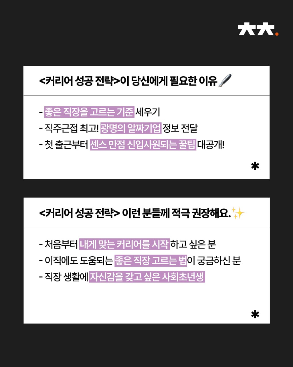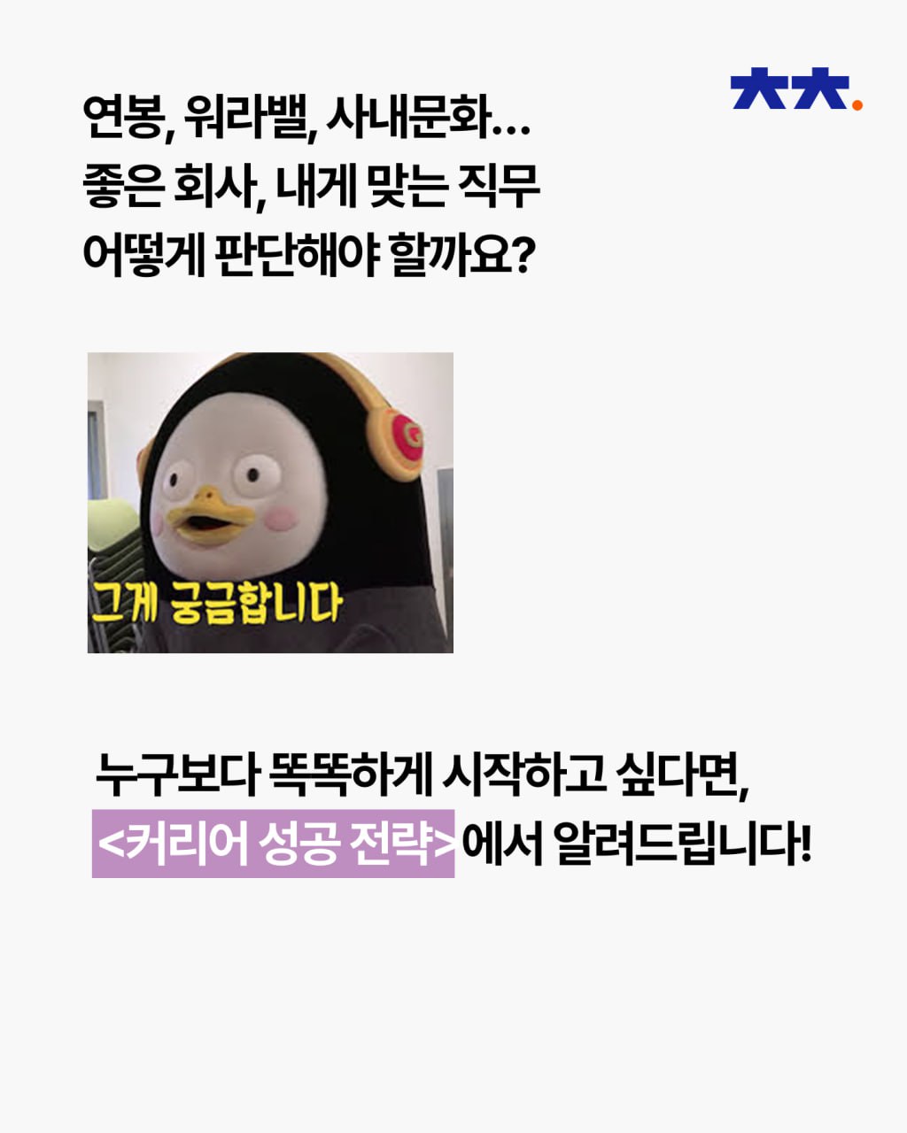 이제 여러분이 회사를 똑똑하게 선택할 차례입니다.
